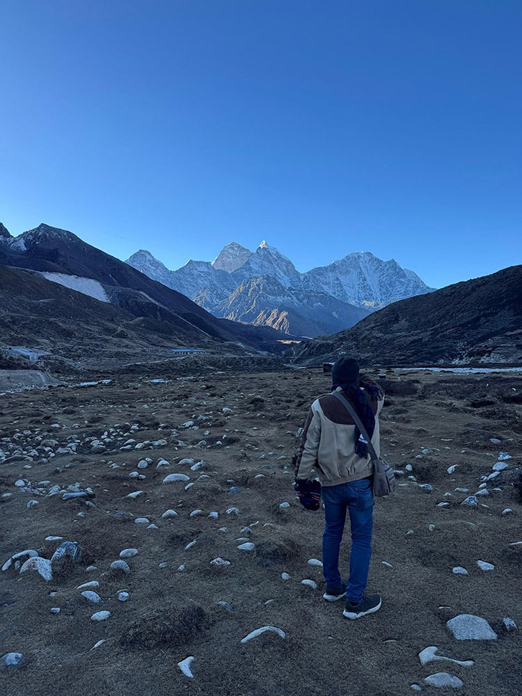 From Dingboche morning starts with a gentle up to reach a high ridge and then on a nice main trail to reach Thugla, with few houses that serve as Tea- House here great Khumbu glaciers melt into a raging river.