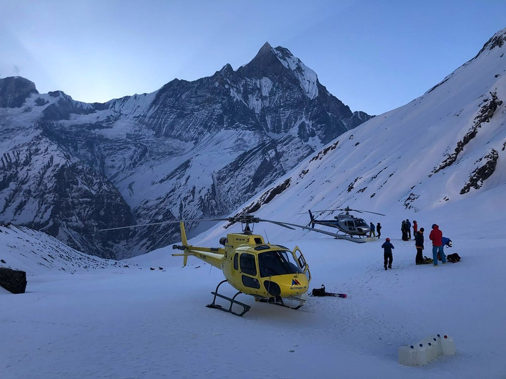 Sharing helicopter is available in main season, in slow season there are less trekkers so depend on how many trekkers are on the route.