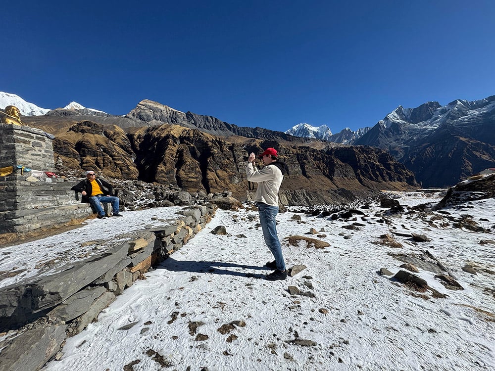Standing beneath tallest peaks of the planet with fabulous surrounding views.